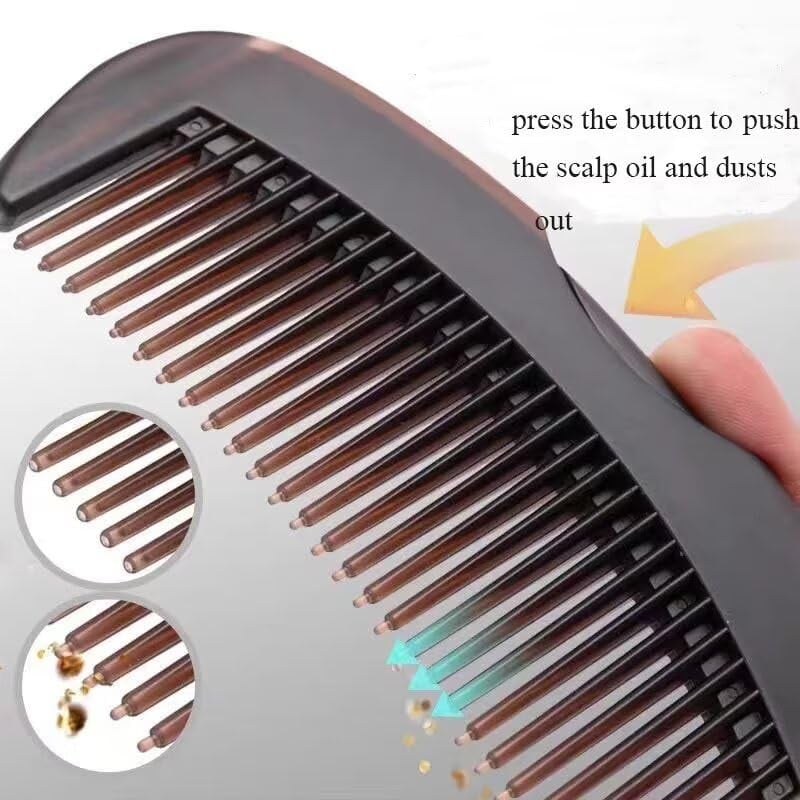 Unique Hollow Tooth Design: Effectively traps dandruff and oil for easy removal with a simple button press after combing.