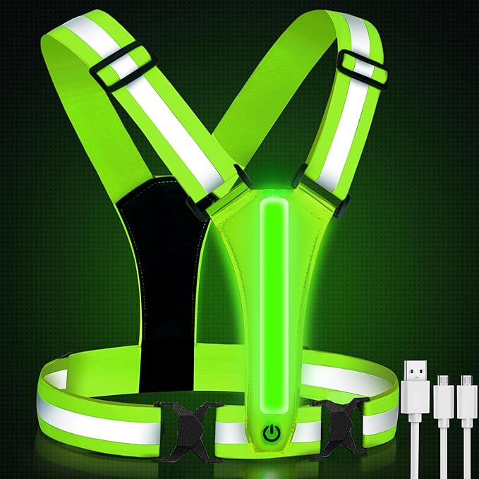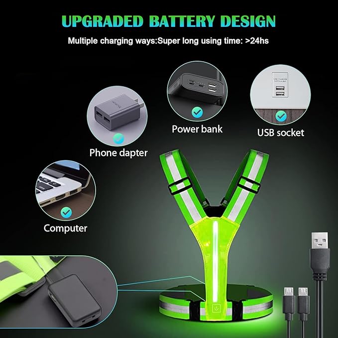 - USB Rechargeable Reflective Running Gear : Enjoy the convenience of USB charging with dual Type-C ports for fast charging in just 50 minutes. Revel in an impressive usage time of 7-20 hours, depending on your selected light colors and modes.